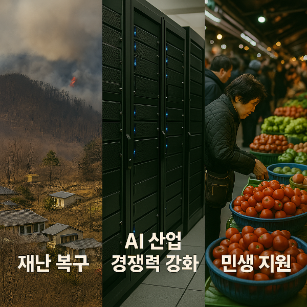 이런 막대한 피해를 복구하기 위해 정부가 10조원 규모의 추가경정예산(추경)을 편성하기로 했어요! 한덕수 대통령 권한대행도 "정치권과 국회의 협조를 받아 주민들이 실질적 도움을 받도록 최선을 다하겠다"고 밝혔습니다.
